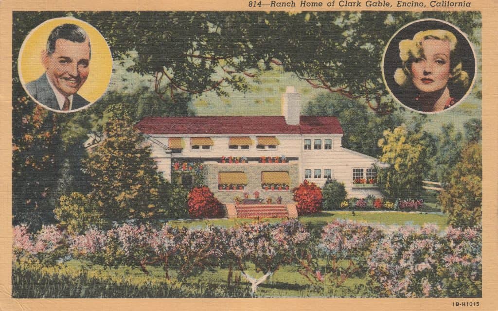 Clark Gable was the “King of Hollywood” in 1939 when he wed Carole Lombard, an actress known for her comedic talents. The couple purchased a remote ranch in Encino at 4543 Tara Drive that enabled them to escape Hollywood’s constant spotlight. Gable had become one of Hollywood’s most successful leading men after winning an Academy Award for Best Actor in Frank Capra’s It Happened One Night (1934), then by starring in Mutiny on the Bounty (1935), San Francisco (1936) and Gone With the Wind (1939).
