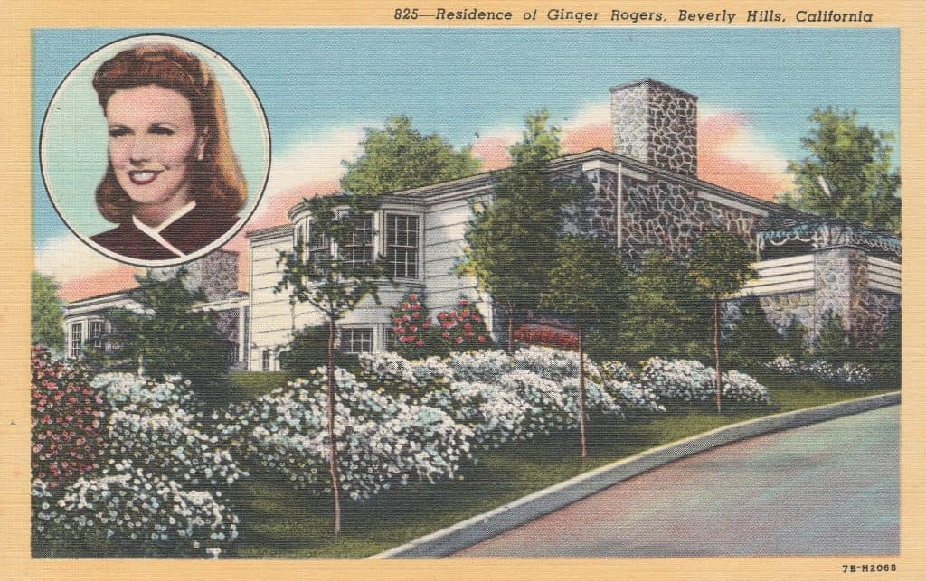 Ginger Rogers built her hilltop home at 1605 N. Gilchrist Drive in Beverly Hills in 1937. An unusual feature of her home was a soda fountain. Miss Rogers was a Christian Scientist and eschewed drinking so there was no bar in on the property.