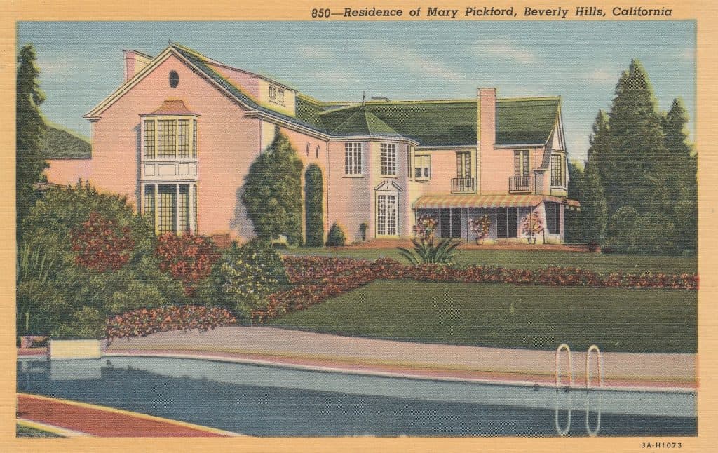 When they married in 1920, Mary Pickford and Douglas Fairbanks were two of the biggest stars of the silent film era. Fairbanks known for swashbuckling roles such as Zorro and Robin Hood was the “King of Hollywood” during the silent film era. In 1919, Fairbanks purchased a rustic hunting lodge in Beverly Hills as a wedding gift for Mary Pickford, “America’s Sweetheart.”
