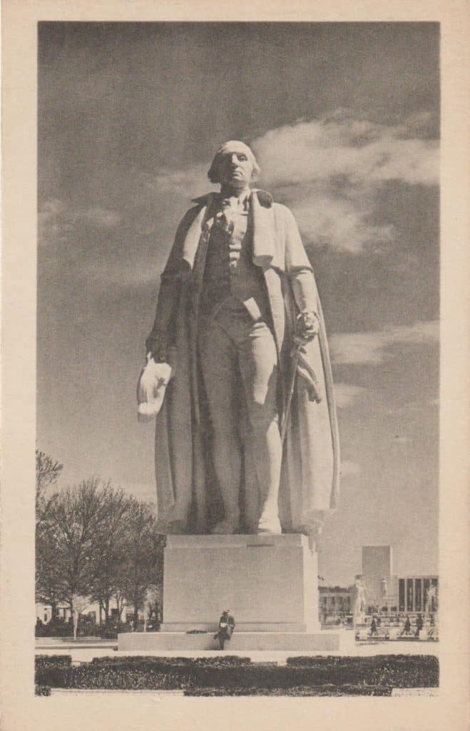 George Washington (left) was sculpted by James Earle Fraser’s (1876-1953). The monumental 65-foot-high statue was located on the Fair’s Washington Square. Fraser’s prolific sculptural output included the designs for the Indian head and buffalo nickels minted by the United States Treasury between 1913 and 1938.