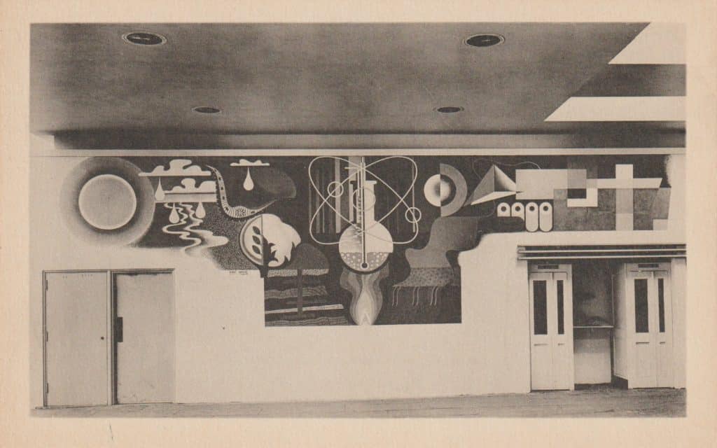 Water as Power is a mural painted by Andre Maurice Durenceau (1904-1985), and was located in the Fair’s Hall of Industry. In the 1940s he was regarded as one of the outstanding mural painters and designers in the United States. He first worked in Hollywood as a designer of costume jewelry, and later in New York as a muralist and a commercial illustrator, including creating advertising for the fair.
