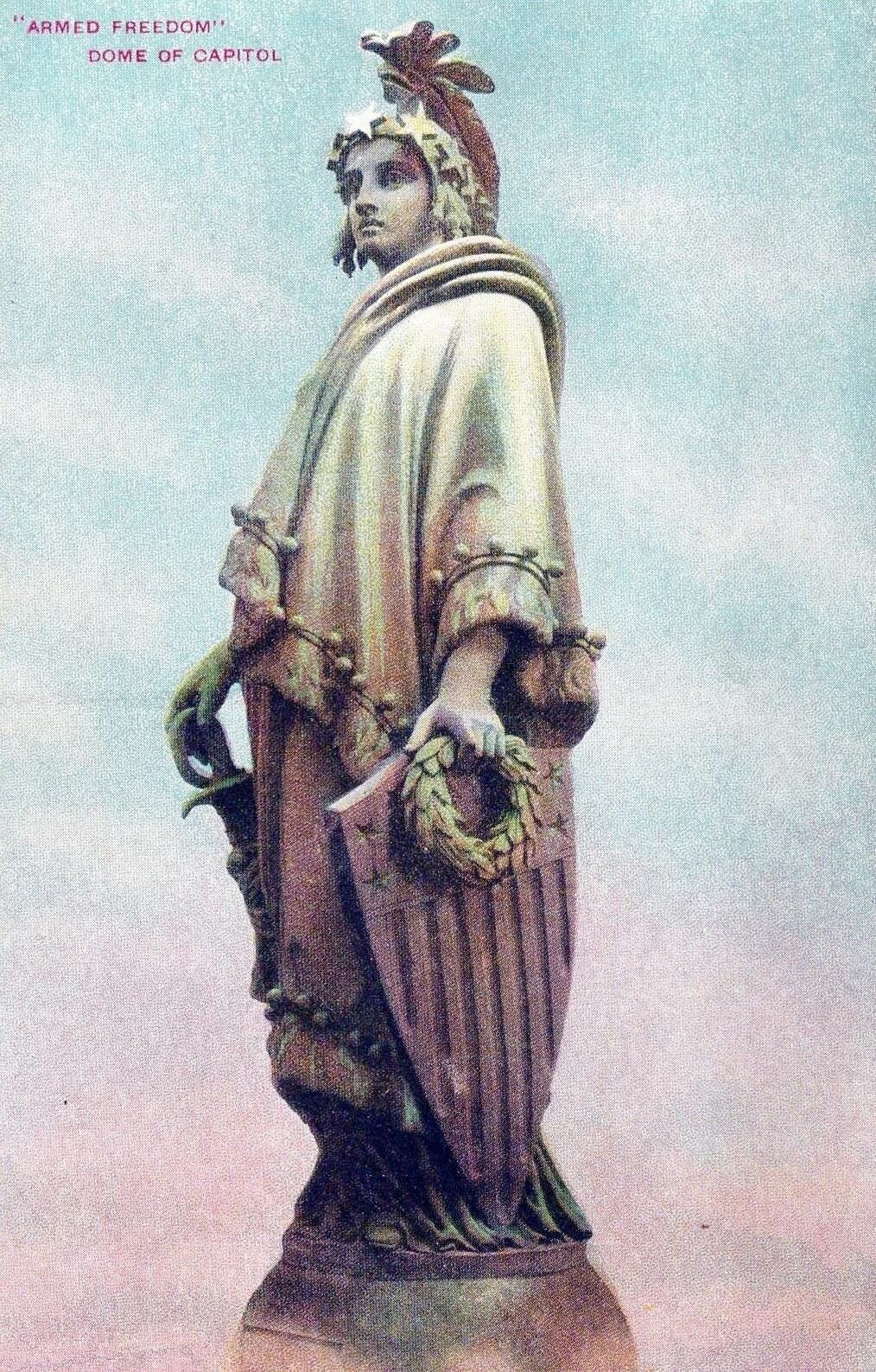 This postcard appealed to me because its title, “Armed Freedom Dome of the Capitol.”