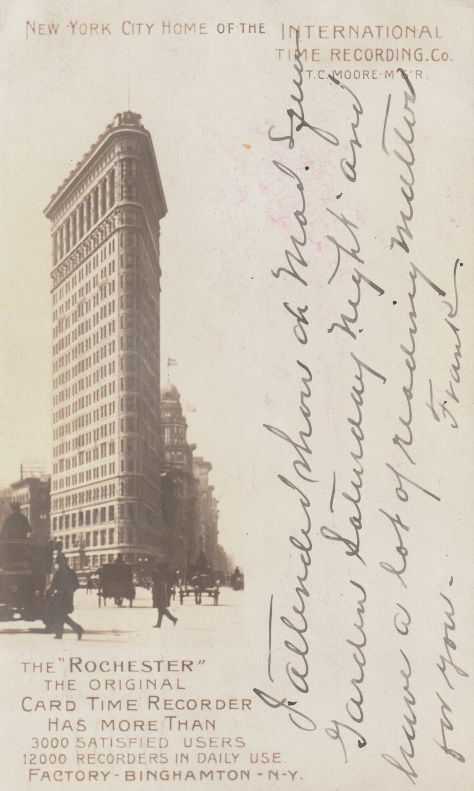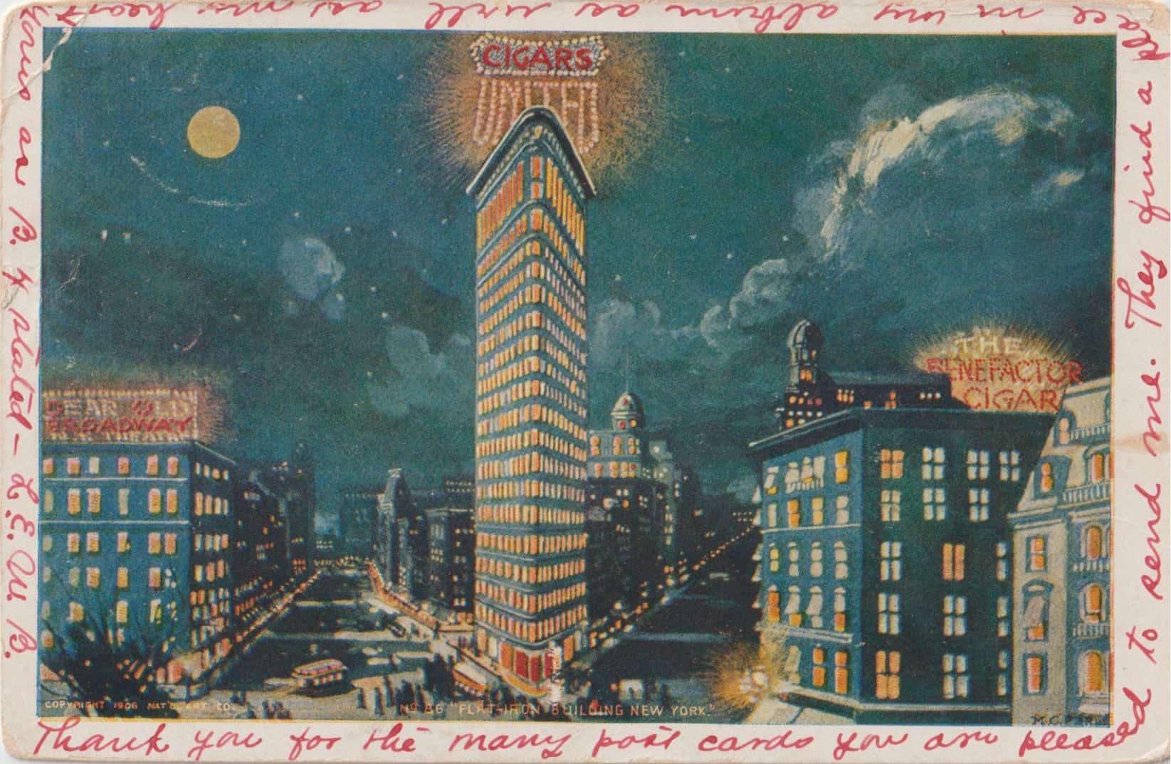 This article showcases a smaller, less common type of Flatiron Building postcard – marketing postcards. These interesting and diverse postcards trade off the iconic nature of the building, or they advertise the building itself, or show the location of businesses in or near this building.