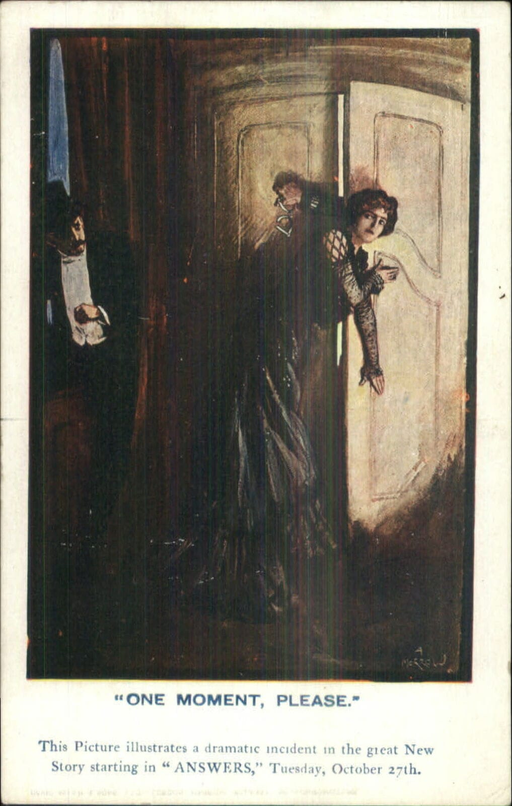 Answers is a fascinating case study in magazine history (it ceased publication in the 1950s) and would likely have been forgotten long-ago, but postcards of the cover art were made, and the cards may well be the only solid reminder that Answers ever existed. Nevertheless, at least readers of Postcard History know the name Harmsworth.