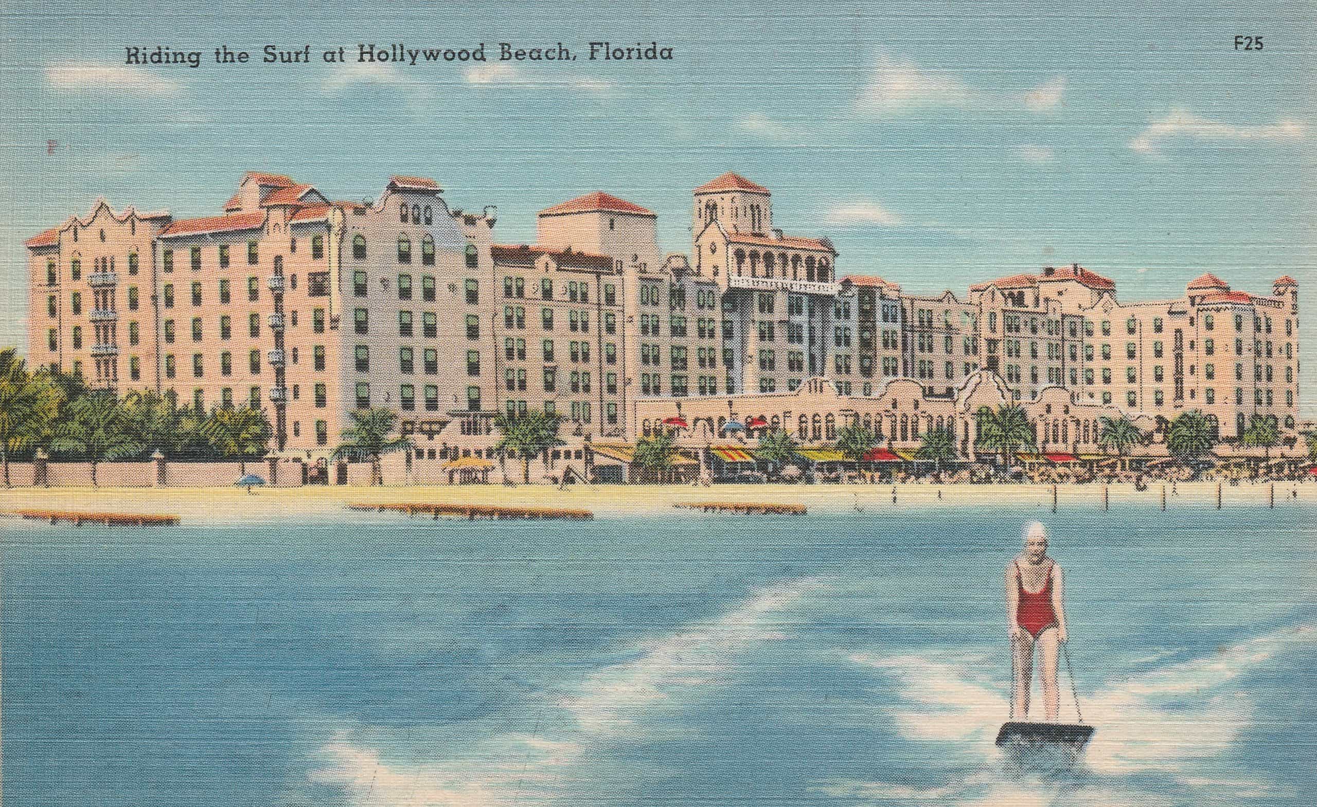 The Hollywood Beach Hotel in North Hollywood, Florida opened in 1925 during the Florida land boom. It was built in the Mediterranean Revival architectural style popular in Florida during that period. There were five hundred rooms, a ballroom, an ornate dining room, and a private beach. The hotel’s seven stories offered views of the Atlantic Ocean and the Intracoastal Waterway.
