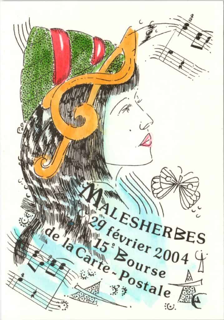 Jean-Luc’s cards are not limited to advertising postcard salons, this example (left) is for a perfume fair. While looking at this postcard you can imagine the aroma from the perfumes.