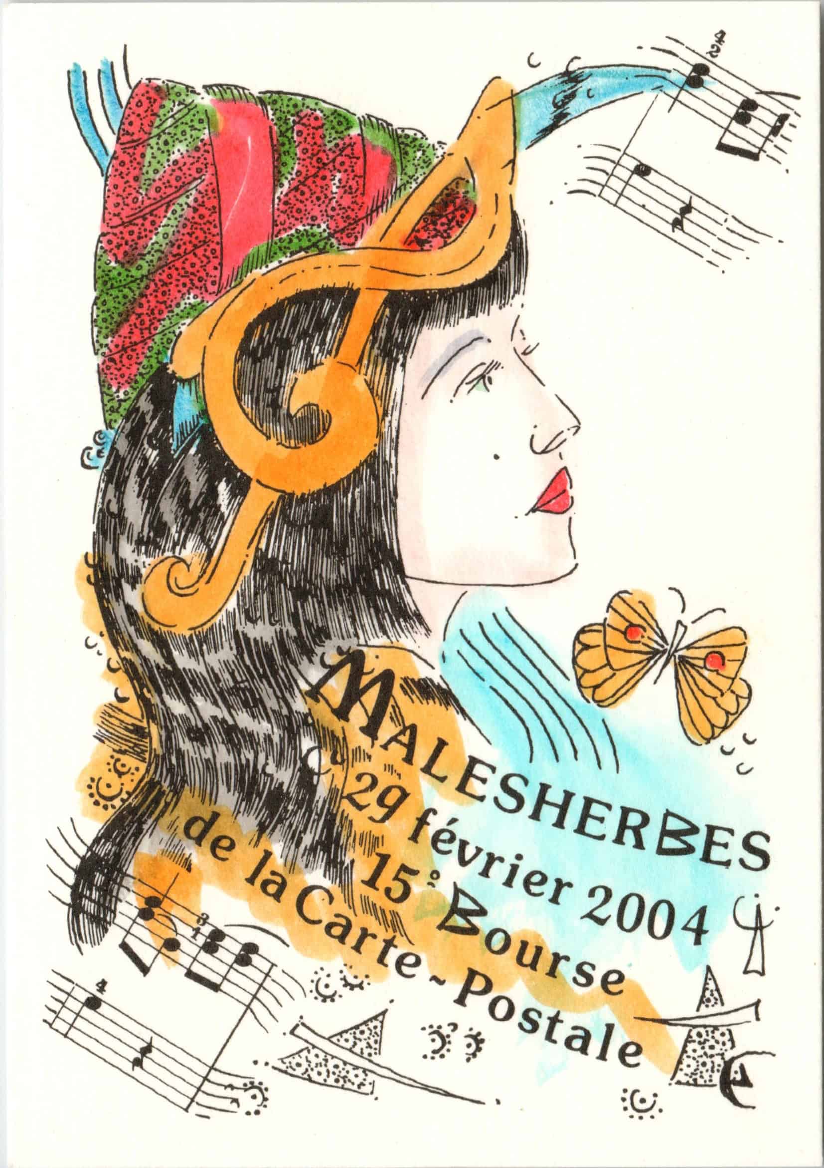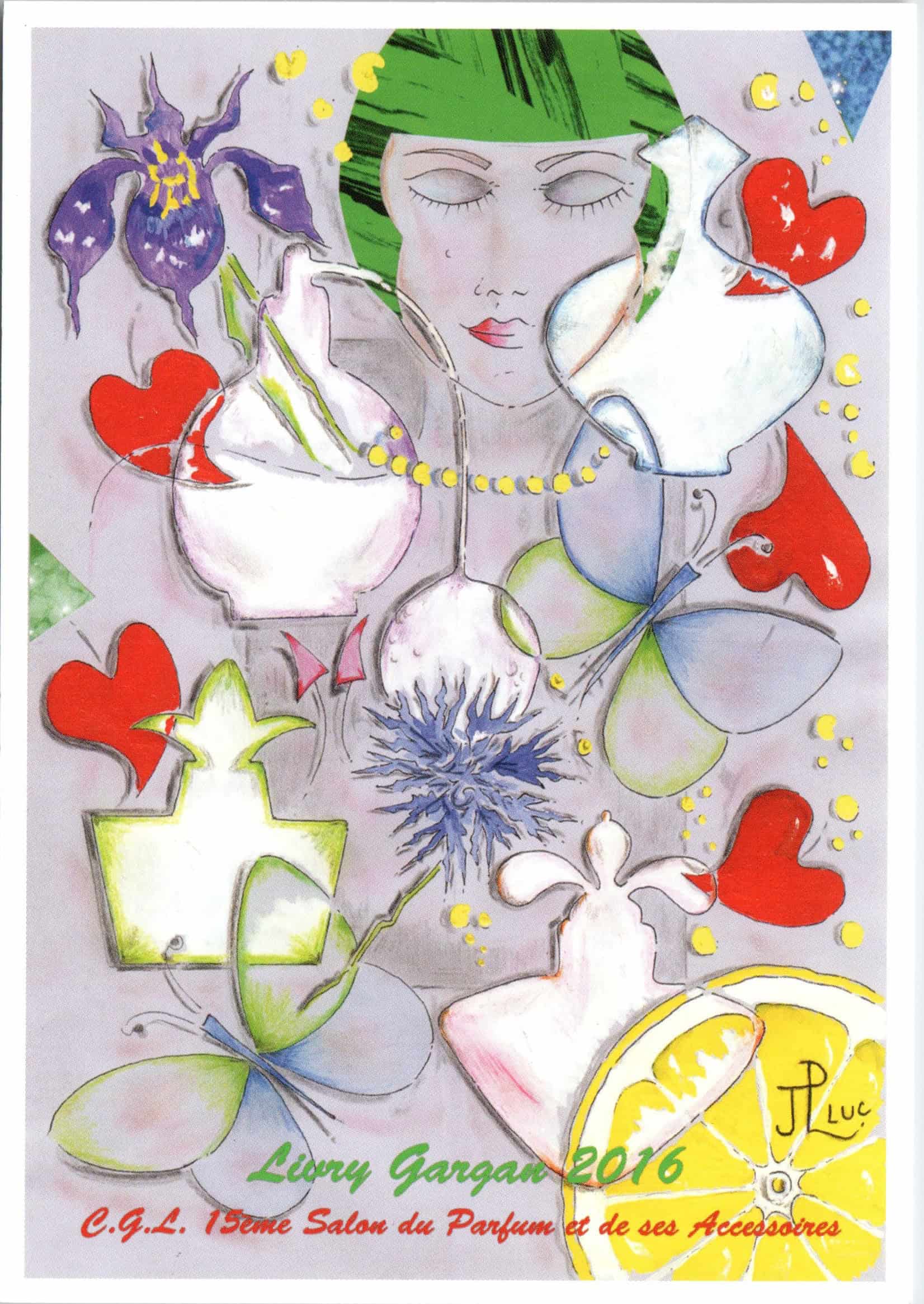 Jean-Luc’s cards are not limited to advertising postcard salons, this example (left) is for a perfume fair. While looking at this postcard you can imagine the aroma from the perfumes.