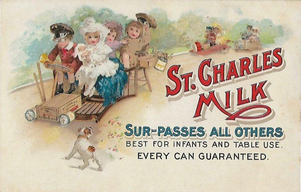 This pre-1907 advertisement for St. Charles Milk comes from Saint Charles, Illinois.