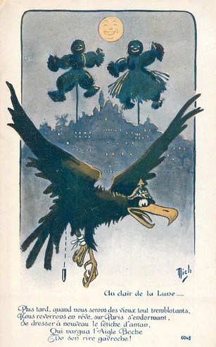 Nénette and Rintintin began as tiny yarn dolls, scarcely an inch tall, simple enough for a child to make, yet powerful enough, so it was thought to shield a person from danger. By the summer of 1918, Paris was exhausted by years of war. Nearly everyone was shaken by air raids and haunted by that long‑range German gun known as Big Bertha. In that atmosphere of fear and uncertainty, Parisians embraced these miniature mascots as talismans of hope.