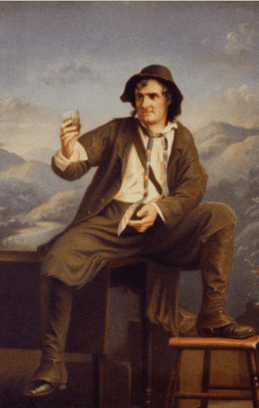 In the first act, Rip was still a lazy man from the Catskill Mountains of colonial New York whose drinking and other faults are the bane of his wife, Dame Van Winkle, who often scolds him for his laziness and drinking. Rip escapes his wife and heads into the mountains where he meets some mysterious veterans from Hendrick Hudson’s crew who are playing nine pins. They offer him liquor and he soon falls asleep.