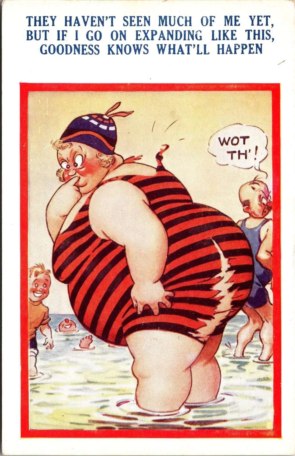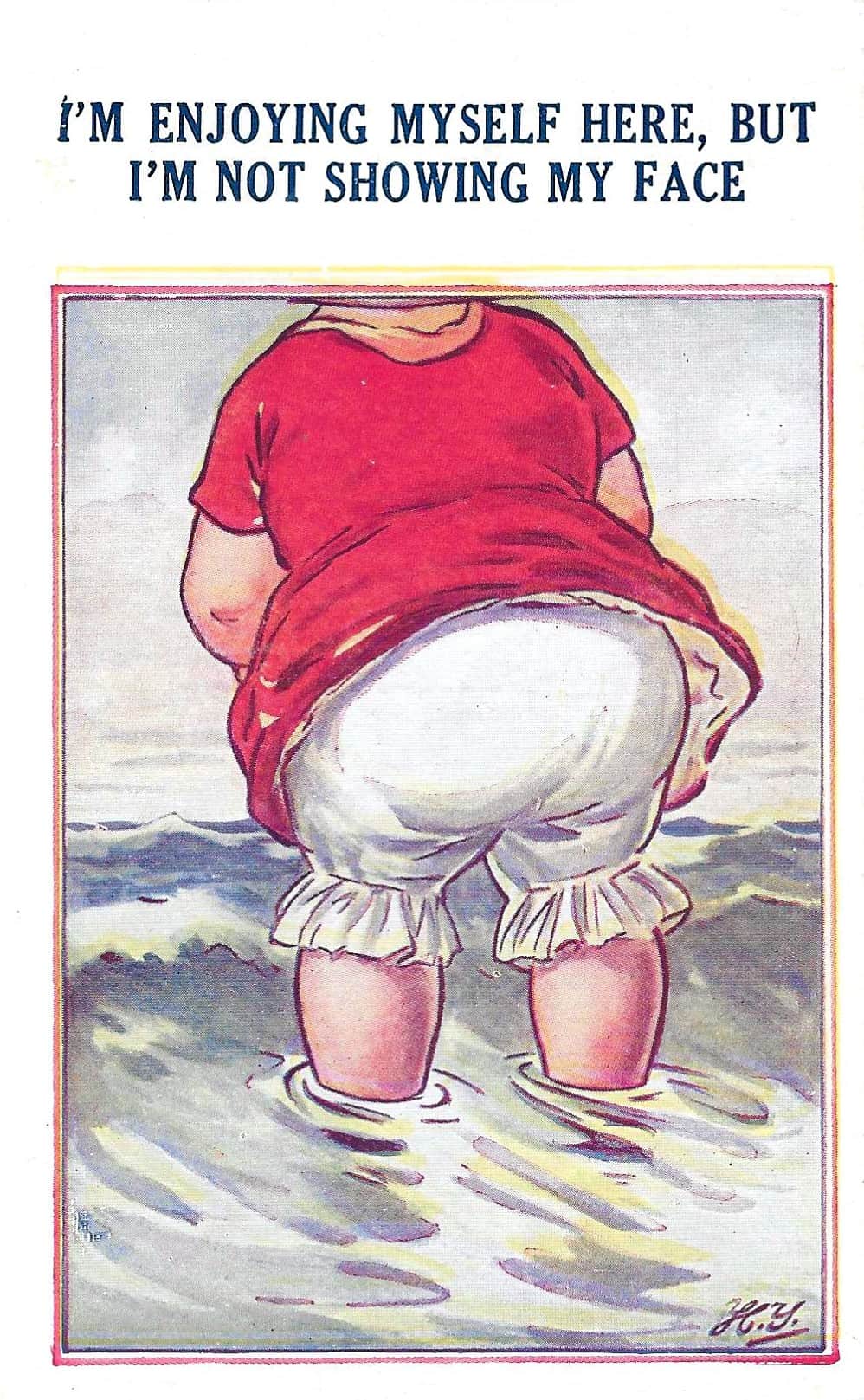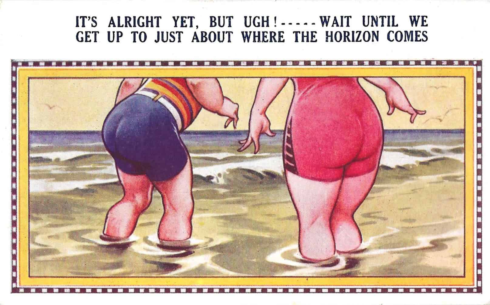 Artists by the dozen, Donald McGill, in particular took to the making of seaside humor postcards during the boom in the early twentieth century. McGill, whose exaggerated bodies — especially big bottoms, became models for other publishers like Bamforth to find artists who would imitate McGill’s success. McGill’s cards were mass produced, cheap, a bit risqué, and were perfect souvenirs for the working‑class holidaymakers to poke fun at themselves and each other. The “big bottom” became a visual shorthand for comic mischief.