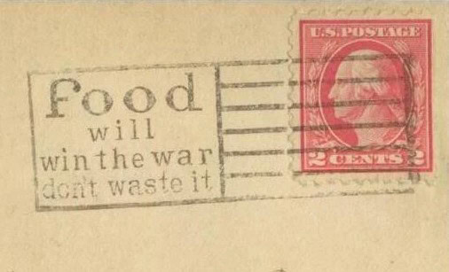 Here in America, Americans were still in the throes of isolationism, and “Meatless Monday” and “Wheatless Wednesday,” because they were part of a voluntary conservation campaign, seemed more palatable to Americans since we were asked—not forced—to save key staples for the war effort. The messaging even reached our postal cancels.