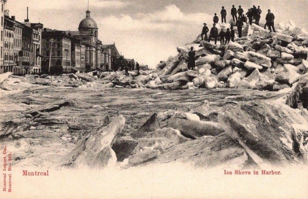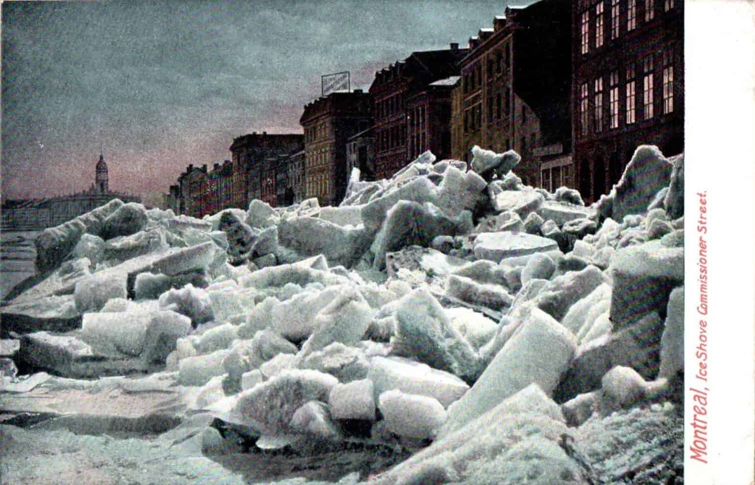 An Ice Shove? You may be unfamiliar with the term, but you will surely recognize what it is! Montreal, Quebec, circa 1910