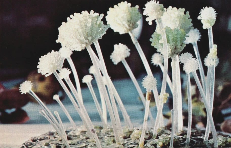 The Blaschkas’ methods combined traditional lampworking with innovative techniques they developed specifically for botanical modeling. They used clear and colored glass rods, shaping them over flames and adding pigments, wires, and adhesives to achieve lifelike textures. Their models were not idealized versions of plants but scientifically faithful representations. And subsequent models often depicted multiple stages of growth and cross‑sections.