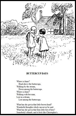 The first and second, are drawings of a lonely little boy, from the first poem in the book, Solitude; and a sketch of a boy and a girl in a field of flowers, from the eighth poem in the book entitled Buttercup Days, both found at the Old Dominion show in Virginia.