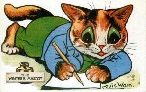 The whole world likes cats, but not because they are cute, cuddly, and comfortable company. We like cats because we admire their intellect, inquisitive nature, and independence. A cat knows his own mind and mankind admires that character trait. Louis Wain reminds us that we like cats with every piece of his art.