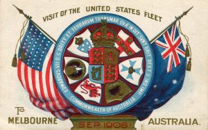 U. S. Fleet Visits Australia The year before President Theodore Roosevelt left office, he dispatched the U. S. Navy’s Atlantic Fleet on an around the world tour. Twenty-eight ships and 14,000 men left port in Hampton Ponds, Virginia for South America, Hawaii, New Zealand, Australia, the Philippines, Japan, Malaya, and back home through Suez and the Straits of Gibraltar. One of the…
