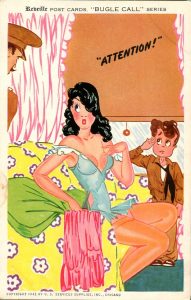 This scarce set of cards was a product of the American Colortype Company of Chicago and New York. Each card is inscribed in the top margin with “Reveille Post Cards. “Bugle Call” Series,” and carries a 1942 copyright by U. S. Services Supplies, Inc. Chicago. You will find examples from the set below; there are…